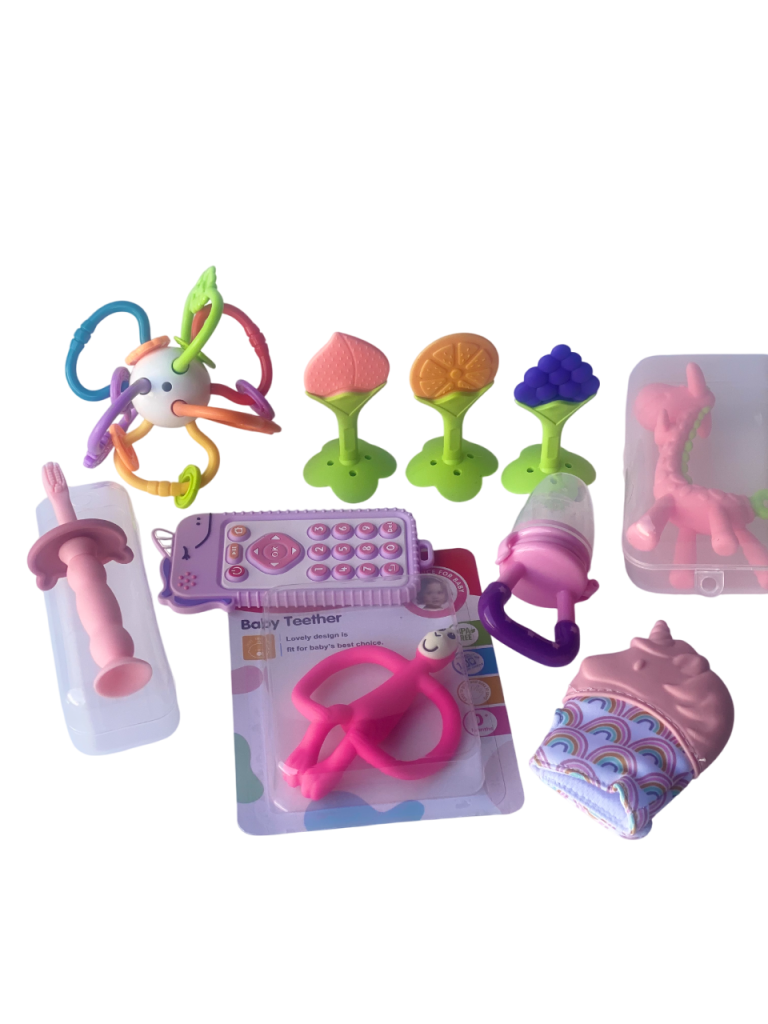 - 1 Juguete mordedor en forma de molécula: Versátil y lleno de texturas para calmar y entretener al bebé.