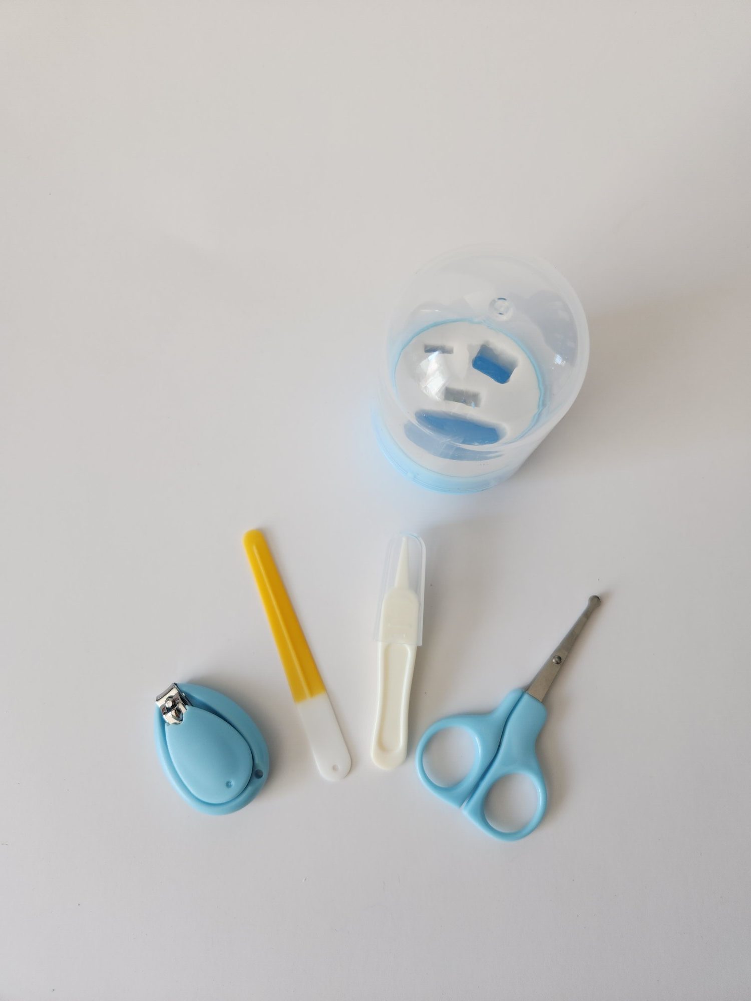 - Incluye 4 esenciales: mini tijera de puntas redondeadas, cortaúñas ergonómico, lima suave y pinza de precisión.